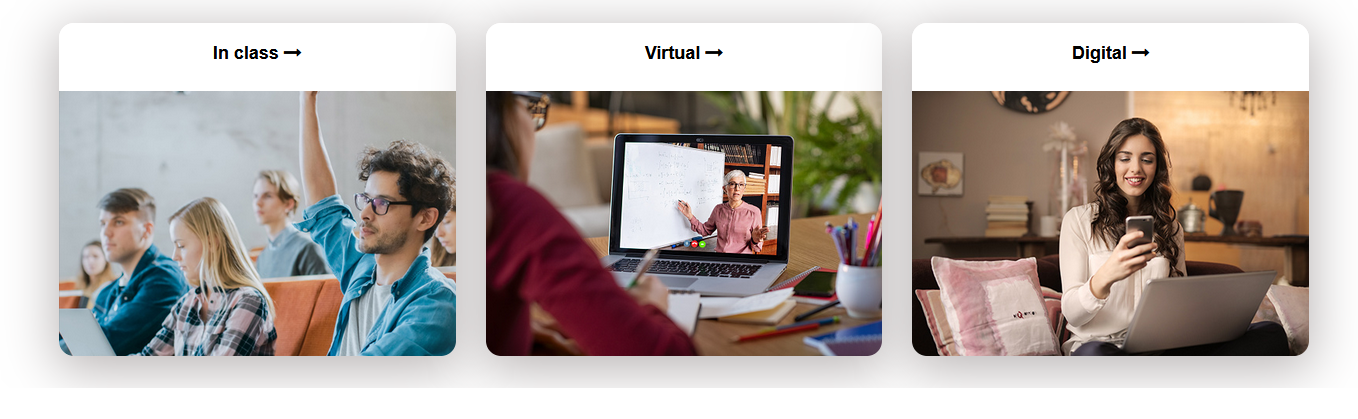 - A virtual classroom will be conducted through zoom. In this format, teachers will be conducting a live class with material on-screen and allotted time for questions and answers (Q & A)